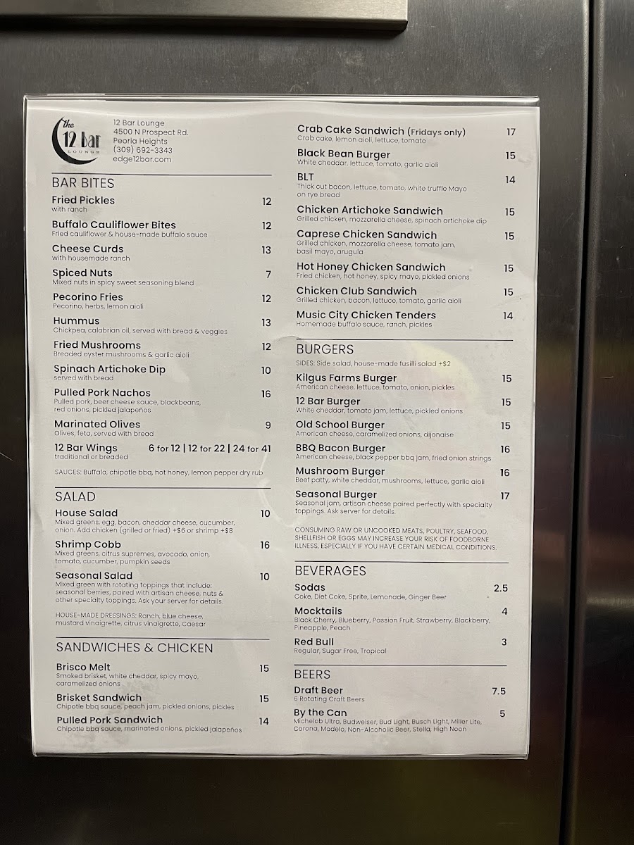 Welcome to The Twelve Bar Lounge, Peoria Heights’ urban oasis situated at 4500 N Prospect Rd. A perfect blend of modern aesthetics and delightful culinary offerings, this lounge promises a truly memorable experience for food enthusiasts and social butterflies alike.